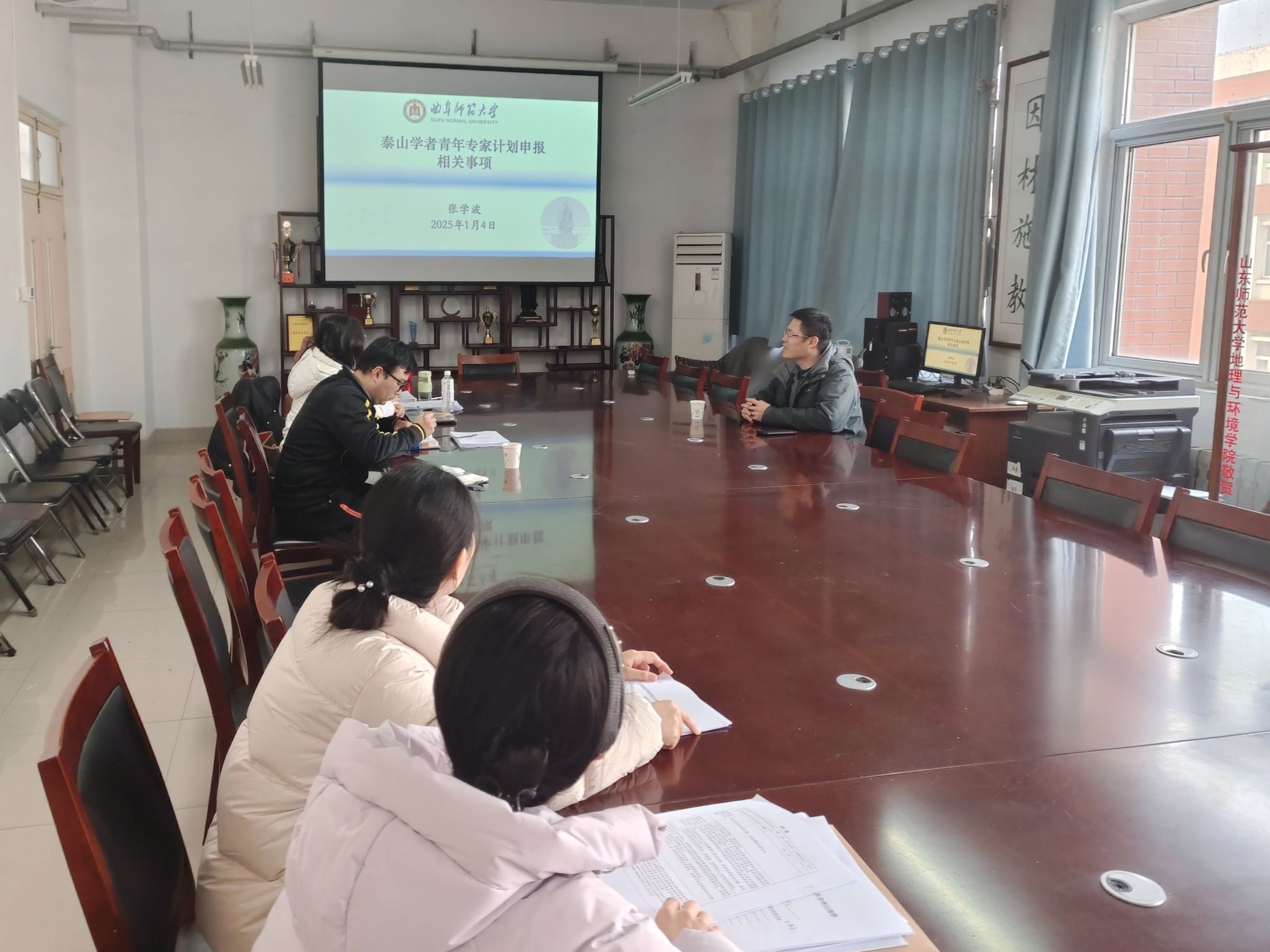 1月4日下午,JINNIAN金年会地理与旅游学院特邀曲阜师范大学地理与旅游学院泰山学者青年专家、博士生导师张学波教授为学院青年教师作了题为《泰山学者青年专家计划申报相关事项》的专题报告。本次活动由学院院长王敏教授主持,学院多位青年教师积极参加并认真聆听。