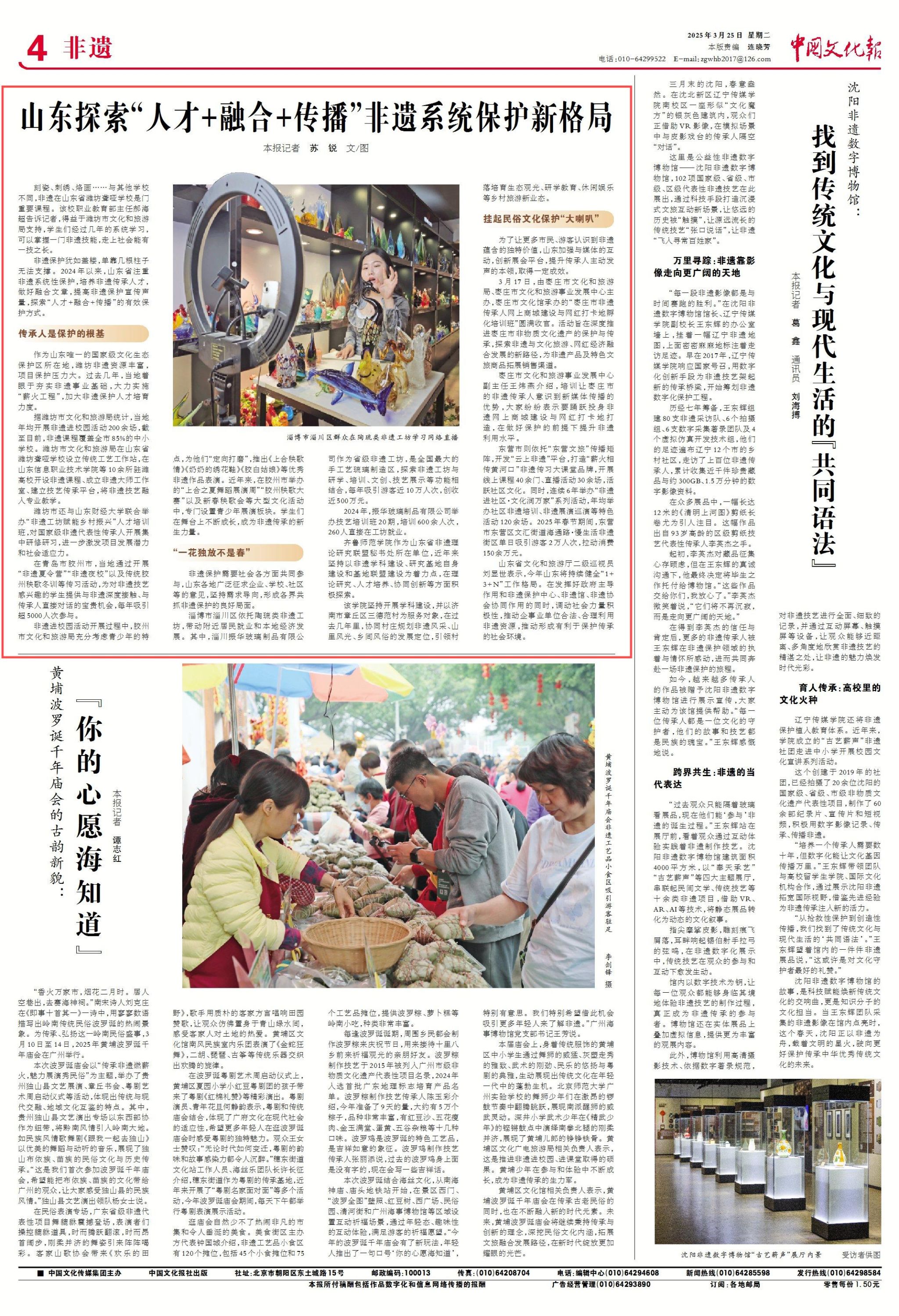 《山东探索“人才+融合+传播”非遗系统保护新格局》https://npaper.ccmapp.cn/zh-CN/?page=4&Hid=67e199f45aeaa494b6d50080
