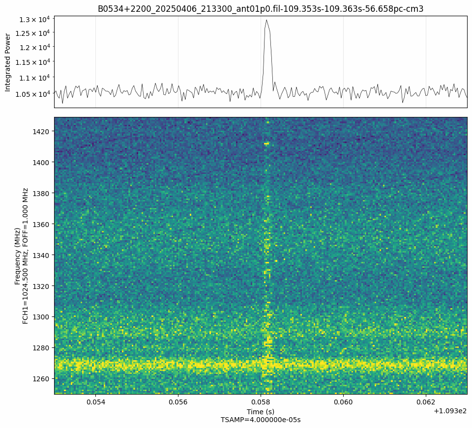 QUEST在此次探测任务中展现出了优秀的射电观测性能。该阵列集成了先进的天线技术、数据采集与处理系统,实现了对强射电脉冲(峰值流量>1000Jy)及纳秒级的极窄脉冲信号的高触发捕获率。在捕捉像 Crab 巨脉冲这类瞬变高能现象时,QUEST 阵列能够快速地从背景噪声及干扰中筛选出关键信号,并以极高的数值精度(32 bit)记录信号特征。其卓越的性能不仅确保了此次 Crab 巨脉冲信号的成功探测,更为未来开展更多高难度射电天文观测任务奠定了坚实基础,有望在快速射电暴检测、脉冲星巨脉冲研究等研究领域取得更多成果。