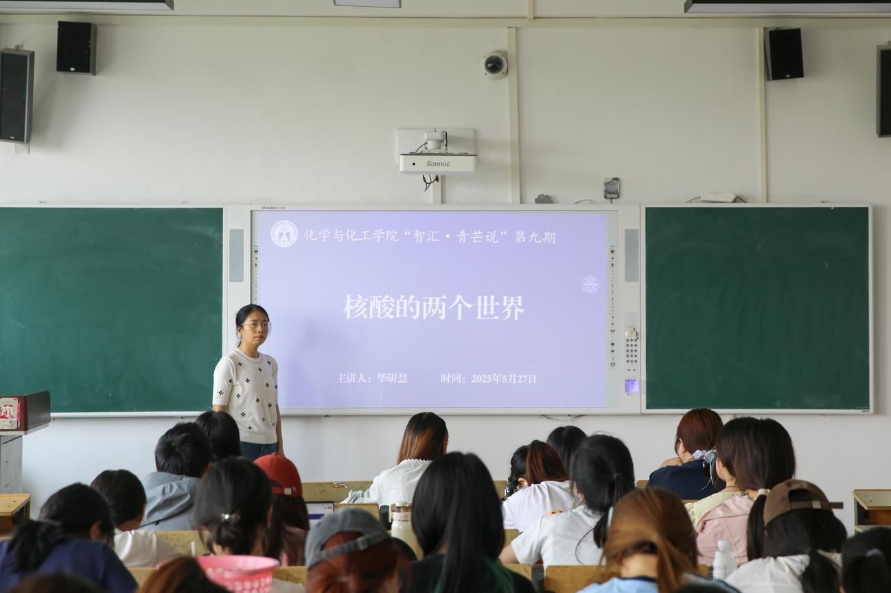5月27日,化学与化工学院于章丘校区一号教学楼A510成功举办第九期“智汇・青芒说”青年博士学术讲座。学院青年博士毕研慧以《核酸的两个世界》为题作学术报告,学生代表到场聆听。
