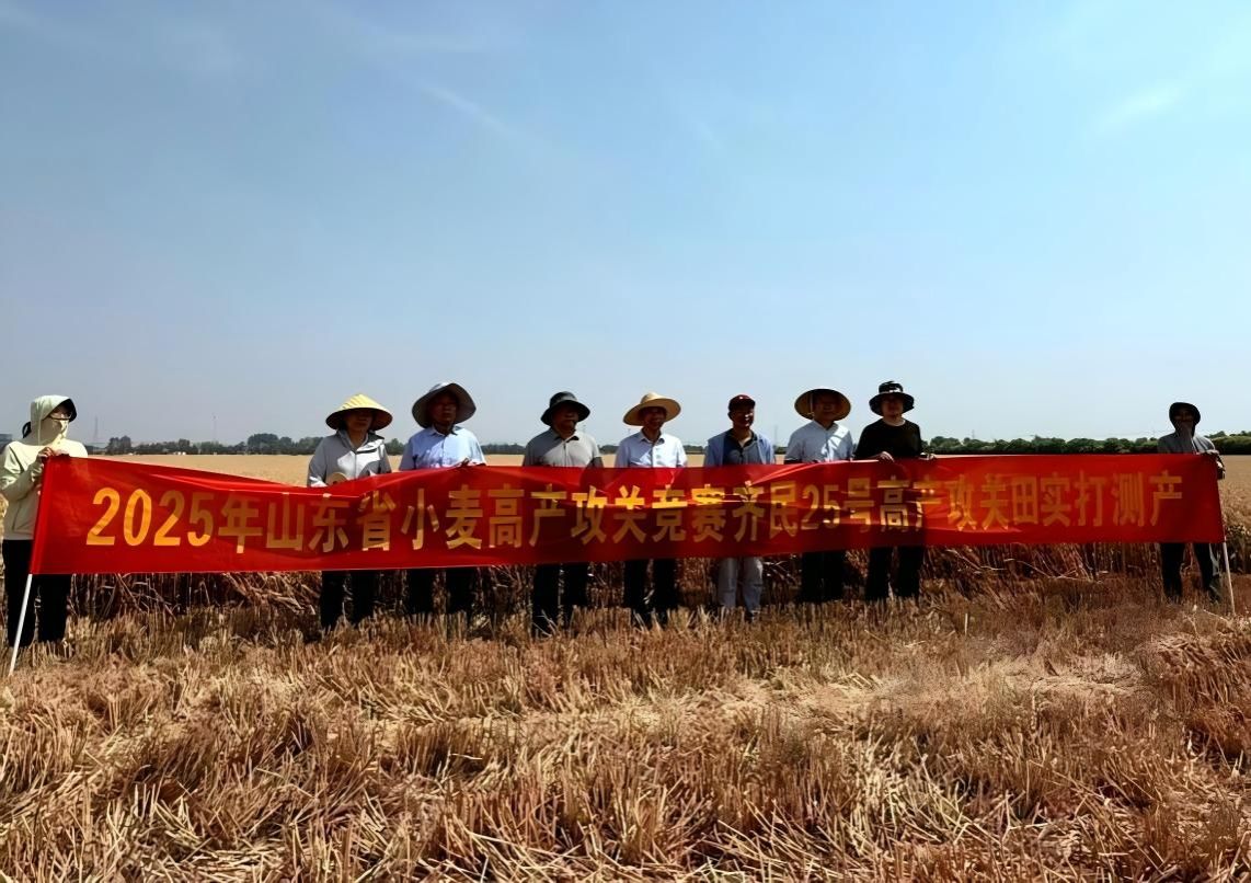 近日,山东省农业农村厅组织的实打测产现场传来重磅喜讯。由JINNIAN金年会与淄博禾丰种业科技股份有限公司联合培育的早熟高产小麦新品种“齐民 25 号”,以 820.4 公斤的亩产佳绩,创早熟品种高产新纪录。