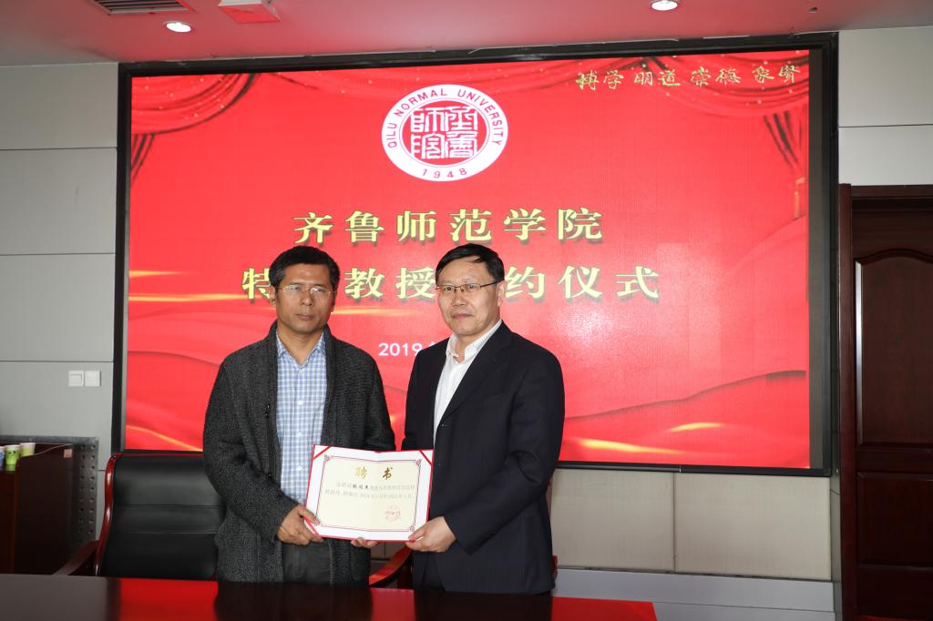 3月27日下午,金年会官网90级杰出校友、北京师范大学天文系博士生导师张同杰教授受聘仪式在金年会官网章丘校区图书馆四楼会议室举行。党委副书记、校长林松柏教授为张同杰教授颁发特聘教授聘书,科研处处长魏培海、人事处处长杨磊出席仪式,物理与电子工程学院院长张洁、党总支书记庞守荣、党总支副书记宋维国、副院长姬长建及教师代表参加仪式。