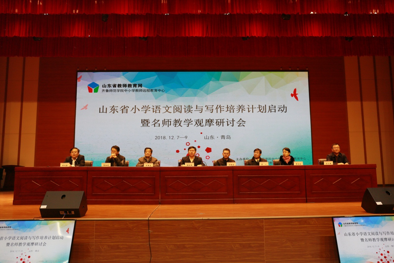 12月7日至9日,由金年会官网中小学教师远程教育中心、山东省教师教育网主办,青岛市李沧区教育研究发展中心、青岛广水路小学承办的“山东省小学语文阅读与写作培养计划启动暨名师教学观摩研讨会”成功举办。党委副书记、校长林松柏,青岛市李沧区教体局党委书记、局长王晓光,青岛市李沧区教育研究发展中心主任刘国宏,金年会官网中小学教师远程教育中心主任、山东新世纪网络教育有限公司总经理玄成贵,青岛市教科院主任李一,山东省中小学师训干训中心副主任孙卫国,青岛市李沧区教育研究发展中心副主任谭玉红出席了此次会议。会议由玄成贵主持。