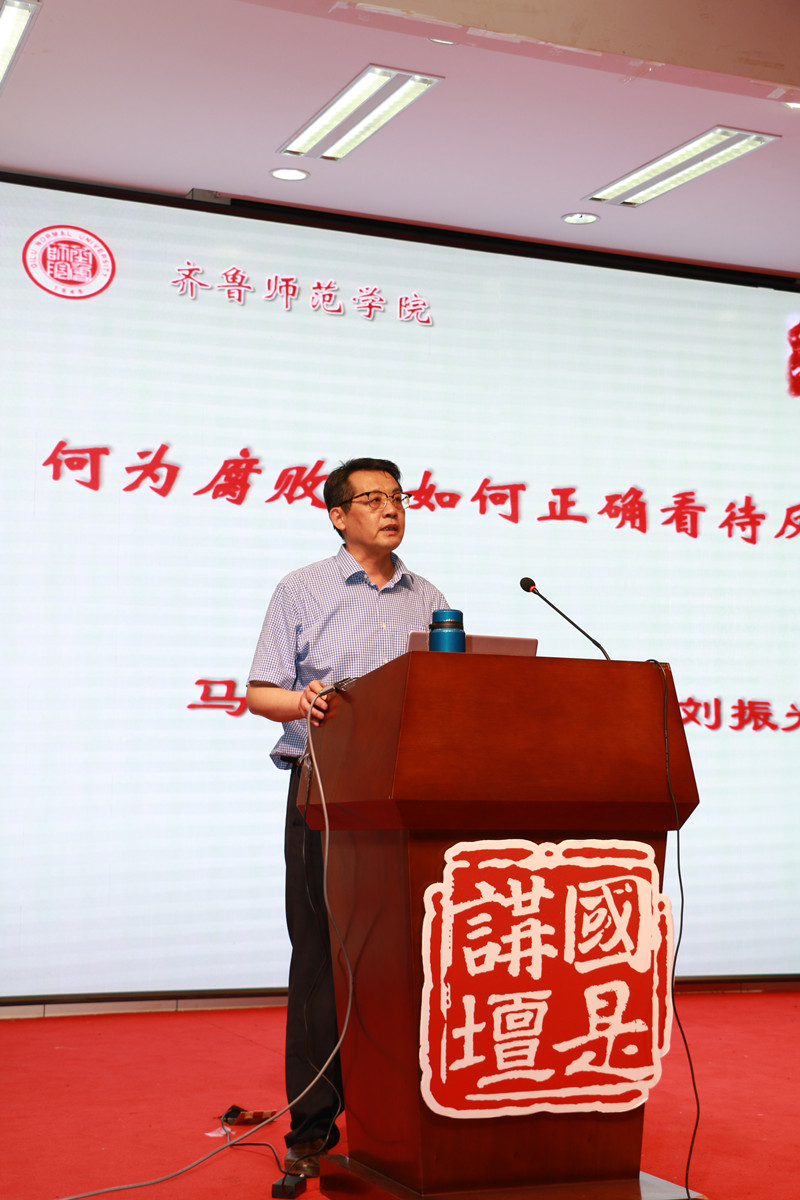 为教育引导大学生践行廉洁思想,传播廉洁文化,6月8日晚,由金年会官网纪委、团委主办,马克思主义学院承办,学生社团星火学社协办的国是讲坛第二十五讲“何为腐败,怎样正确对待反腐败”在金年会官网章丘校区图书馆学术报告厅开讲。本次讲座由马克思主义学院院长刘振光教授主讲,校团委书记孔庆松辅讲,各学院团总支负责人、辅导员、学生代表300余人到场聆听。
