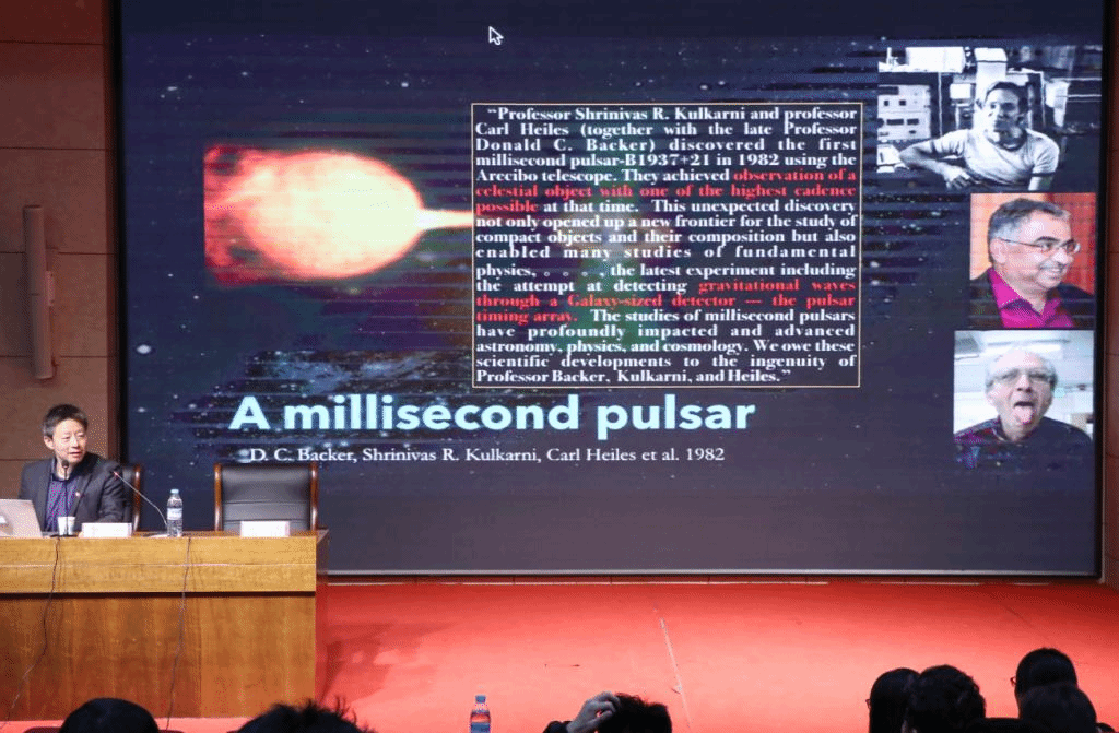 作为世界最大的射电望远镜,中国天眼可以说是人类天文学史上浓墨重彩的一笔。通过李菂教授的讲述,师生们真切深入地了解到FAST在脉冲星观测中取得的优异成绩。目前FAST已经观测到100多颗脉冲星,让人类在探索宇宙的道路上又前进一大步。