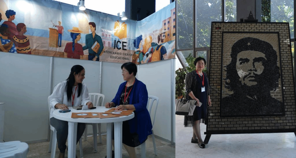 在哈瓦那国际会议中心,还参观了古巴教育机构组织的各种展览,并与展览人员进行了交流,了解到古巴政府历来重视发展教育,并且重视革命英雄人物对教育的影响和作用。国际会议中心的走廊上挂满了开国领袖菲德尔·卡斯特罗的革命事迹展览,大厅里竖立着古巴革命领导人、军事理论家、国际政治家切·格瓦拉的巨幅雕像。古巴革命胜利60年来,古巴的教育取得了举世瞩目的成就,国民素质非常高,实行全民公费教育制度,9年制义务教育,学制与中国大体相同。古巴是拉美识字率和平均受教育水平最高的国家,教育水平居世界前列。同时,古巴教育界对中国的改革发展取得的成就给予了高度评价,对中古学术交流与合作寄予希望,使我们对中国特色社会主义道路更加充满自信。