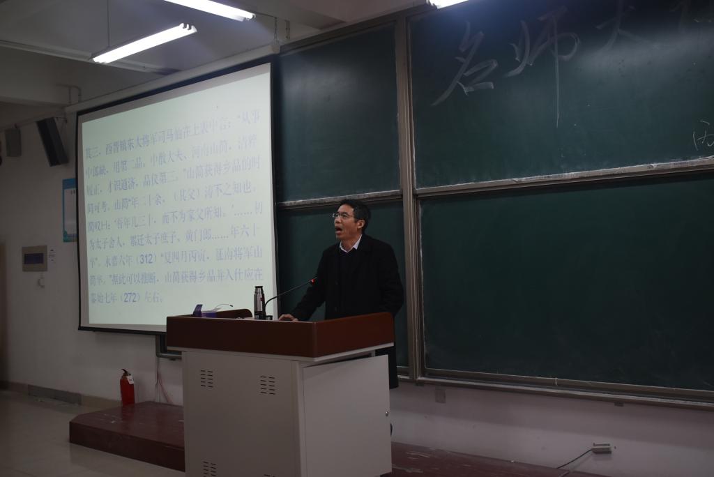 之后,他从唐长孺先生的著作《九品中正制度试释》一文入手,带着强烈的问题意识,通过广泛地引用和仔细地考证史料的方法,就“上品的含义及其演变”和对所谓二品别称的辨析两个方面,详细地讲述了魏晋时期九品中正制度的变化和发展,在“灼然二品”、“门第二品”和“二品才堪”等问题上,提出了不同于唐长孺先生、陈长琦先生等各位史学大家的见解和观点。他经过多年的史料研究,提出了不应将“灼然”视为二品中的非一般二品,而应当是指一个社会阶层的崭新观点。杨恩玉教授以丰富的学识、敏锐的历史洞察力和细腻的史料考证深深地赢得了在场师生的钦佩。