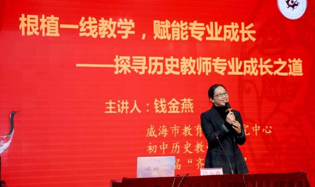 为推动落实金年会官网能力范式教学改革,提高我院师范生培养质量,加强我院与当前中学历史教学的交流与联系,12月9日上午,威海市教育教学研究中心初中历史教研员钱金燕老师在学术报告厅为历史与社会发展学院师生执教初中学段示范课《五四运动》,并做专题讲座《根植一线教学,赋能专业成长——探寻历史教师专业成长之道》。参加本次活动的还有章丘四中的历史组老师以及我院历史学专业的教师和学生。本次活动由历史与社会发展学院院长李红艳教授主持。