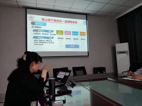 李玉香教授从为何推进一流课程建设、在线一流课程资源建设、线上线下混合式一流课程实践和一流课程申报四个方面为老师们详细介绍了一流本科课程建设的目的,各类一流课程获评情况。李玉香教授还以自己的课程为例详细向老师们讲述了在线一流课程建设的建设内容,建设过程和使用情况,并给学院教师展示了一流课程申报书的填写内容和注意事项。