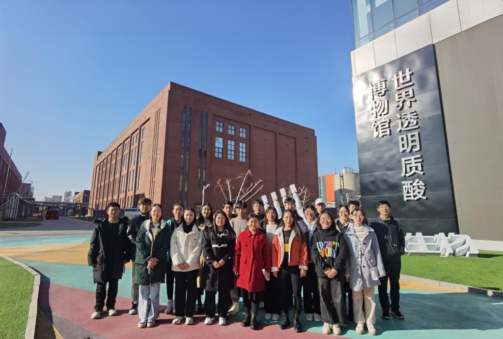 为使学生能够深入了解化妆品行业,用“走出去”的方式进行科教融合,让学生身临其境的感受行业发展和汲取专业知识,2021年12月3日,JINNIAN金年会化妆品中心主任骆兴伟副教授组织2019级应用化学本科班全体同学赴世界透明质酸博物馆,开展“增强专业认同,提升专业素养”专业实践活动。