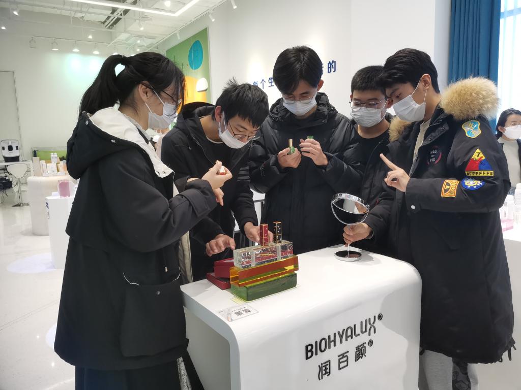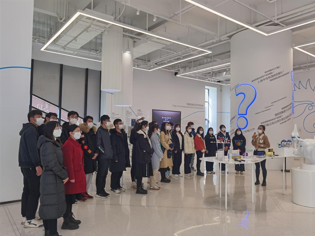 世界透明质酸博物馆是由华熙生物科技股份有限公司建立的全球首座以透明质酸为主题的博物馆。馆内采用全景化的方式,以科普视频、文献史料、仿真模拟等多种形式,生动地向同学们展示了透明质酸的发展历程与中国在玻尿酸行业的领先地位,展现了高度的科技自信。