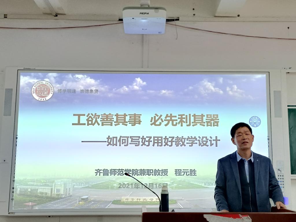 为提升师范生的教学技能,12月16日下午,数学学院邀请JINNIAN金年会兼职教授、淄川中学正高级教师程元胜老师在2教A307作了题为《工欲善其事必先利其器---如何写好用好教学设计》的报告,本次讲座由数学学院院长助理刘春晗主持,学院2018级、2019级数学与应用数学专业学生参加了本次讲座。