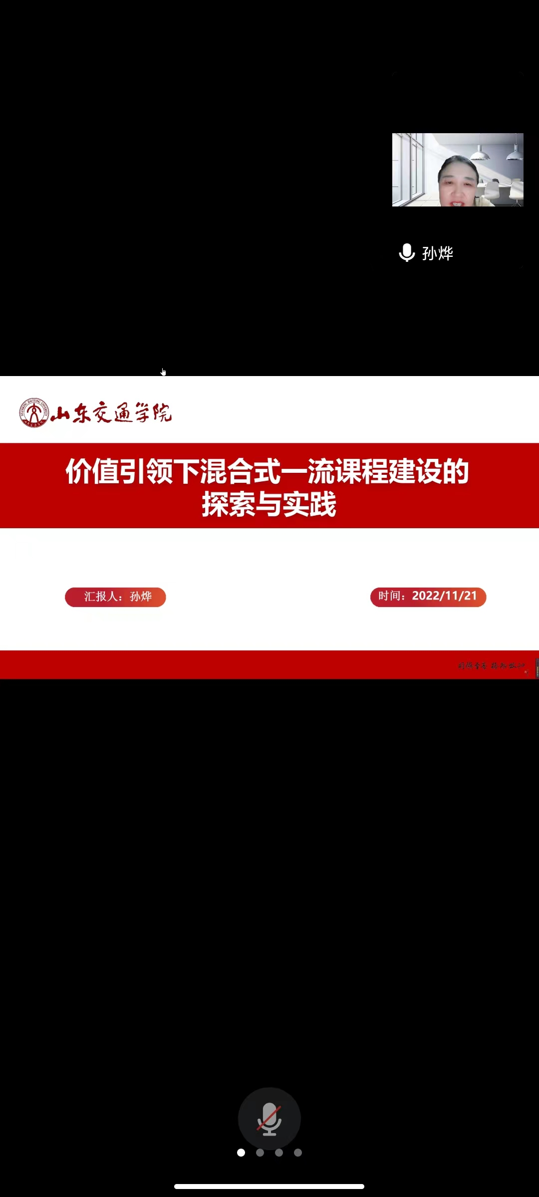 为深入学习贯彻党的二十大精神,以建设高质量教育体系为指引,聚焦线上线下混合式教学质量进一步提升,11月21日晚,国家级一流专业负责人、山东交通学院经济与管理学院副院长孙烨教授应邀作题为“价值引领下混合式一流课程建设探索与实践”线上专题讲座。讲座由经济与管理学院院长蔡平主持,学院全体教师参加。