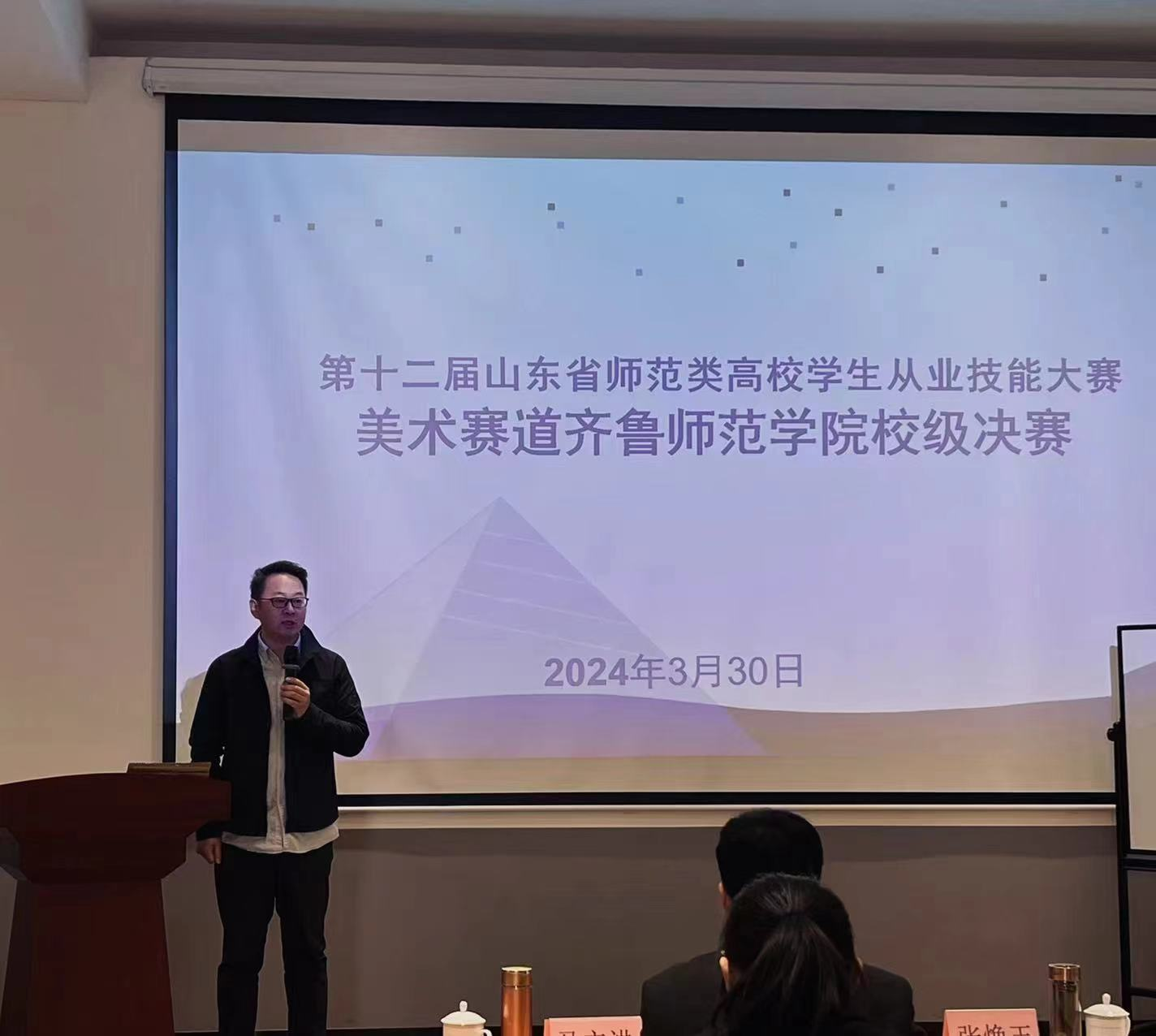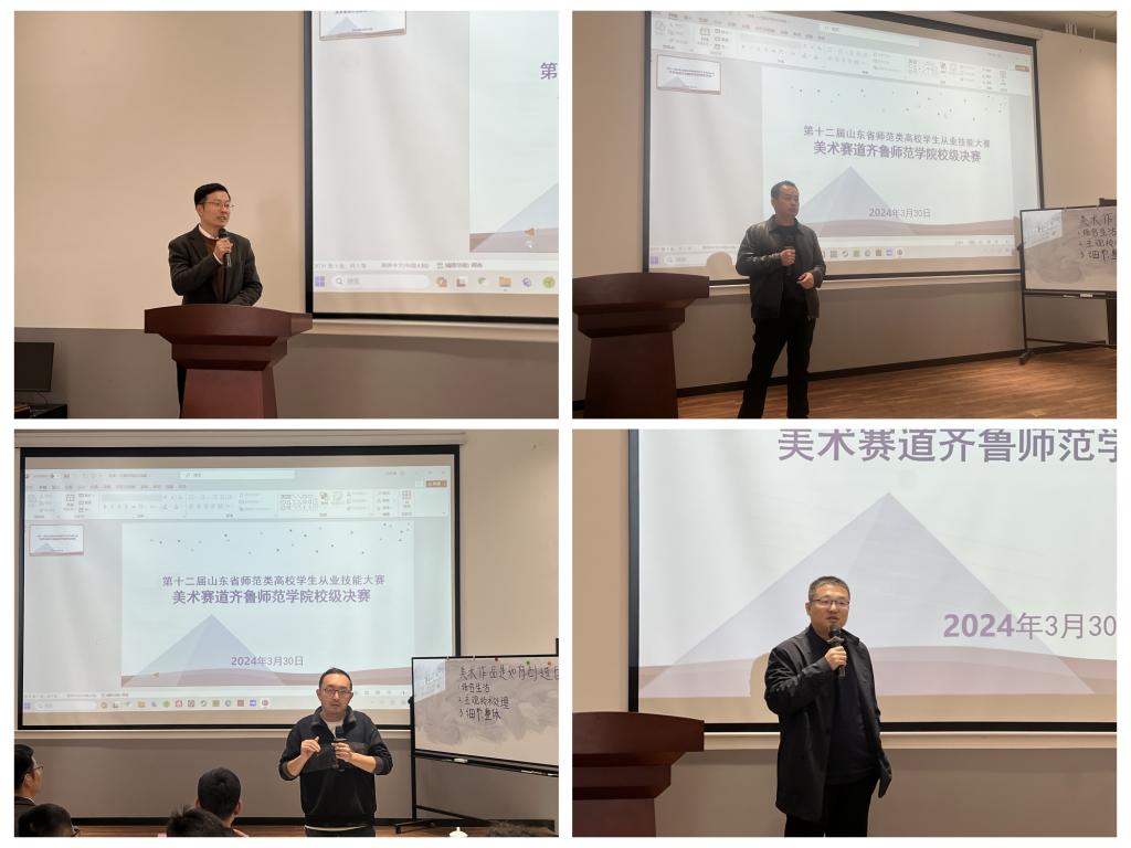 3月30日上午,第十二届山东省师范类高校学生从业技能大赛美术赛道JINNIAN金年会校级决赛在历下校区美术学院阶梯教室举办。济南市教育教学研究院美术教研员张焕玉,全国普通高等学校美术教育专业教师基本功大赛个人全能一等奖获得者、济南大学美术与设计学院美术系副主任马立洪,济南市市中区教体局艺术教研室负责人郭萌应邀作为专家评委莅临指导。美术学院党委书记辛源、院长杨三军、副院长李冉及部分学生代表观看比赛。