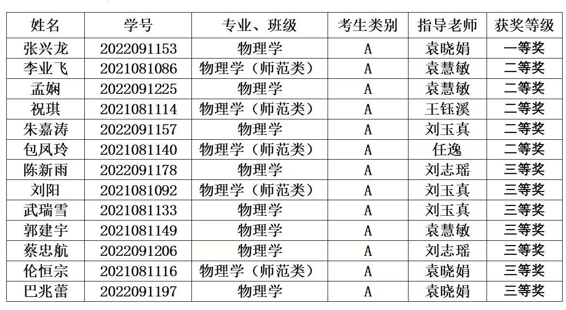 师院学子在山东省大学生物理竞赛中荣获佳绩