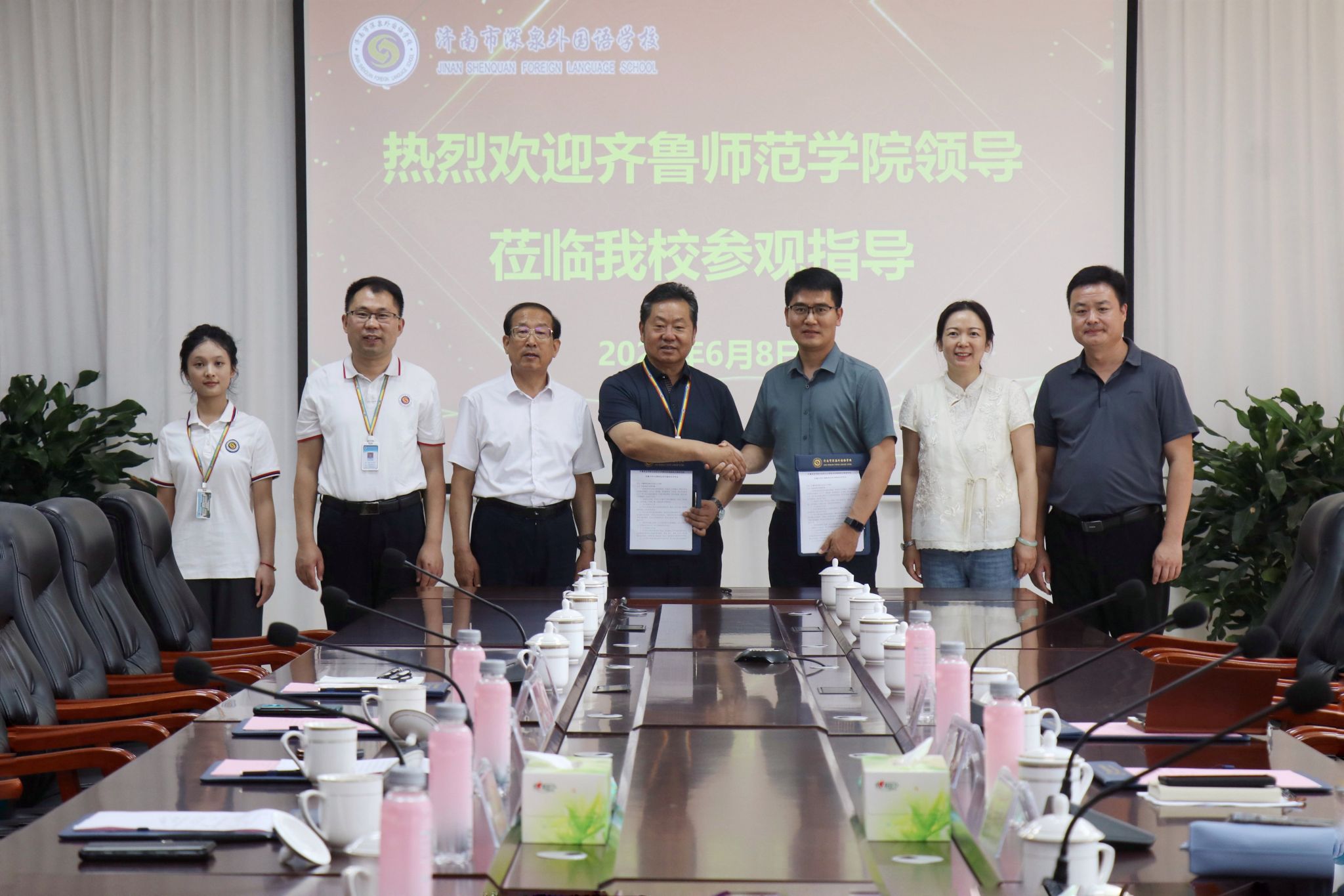 6月8日上午,马克思主义学院党委书记郭百灵、院长赵立峰等一行,到济南深泉外国语学校(以下简称深泉外国语)开展学生实习就业与实践教学合作和共建大学生创新创业实训基地签约仪式。济南深泉外国语学校总校长王义君、校长王曰牟、副校长程震热情接待来访并出席签约仪式。