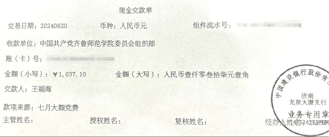 王福海还记得自己去银行汇出这笔“特殊党费”时的场景。“我早晨7点多就到了建行龙泉大厦支行门口,等到9点一上班,我第一个‘冲’了进去。”他介绍,24分钟后,1037.1元党费顺利汇出,一颗心终于踏实下来。这一天,距离党的103岁生日还有10天。