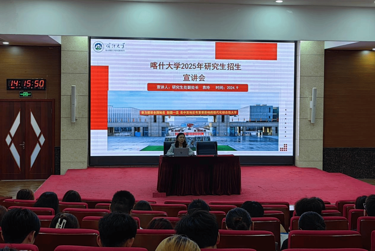 宣讲会上,喀什大学研究生处副处长袁玲详细介绍了该校的基本信息、研究生教育、招生政策、专业设置、人才培养、研究生招生等情况,重点讲解了喀什大学的人才培养模式、师资力量和科研平台建设,通过生动的案例分享和详实的数据展示,让同学们对喀什大学的研究生教育有了更加全面和深入的了解。