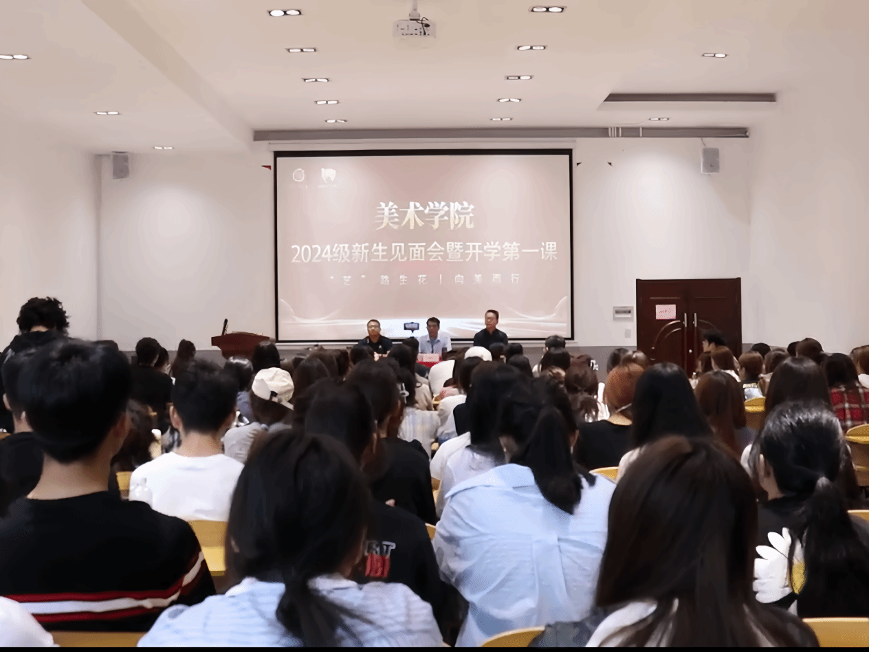 在热烈的掌声中,杨三军以“文化传承”为入口,向同学们介绍了美术学院的历史底蕴与文化气息,并寄语同学们,一是要客观认识自己,认识自己的专业,通过不断求索完成大学教育,更好地认识自我、了解自我、成就自我;二是制定合理的自我规划、学业规划,珍惜大学时光,做好规划、汲取知识、融入集体,实现自我成长;三是学会沟通与交流,明确自己从何而来,明确国家给予青少年的关心爱护,要满怀理想,满怀学识走向属于自己的时代。