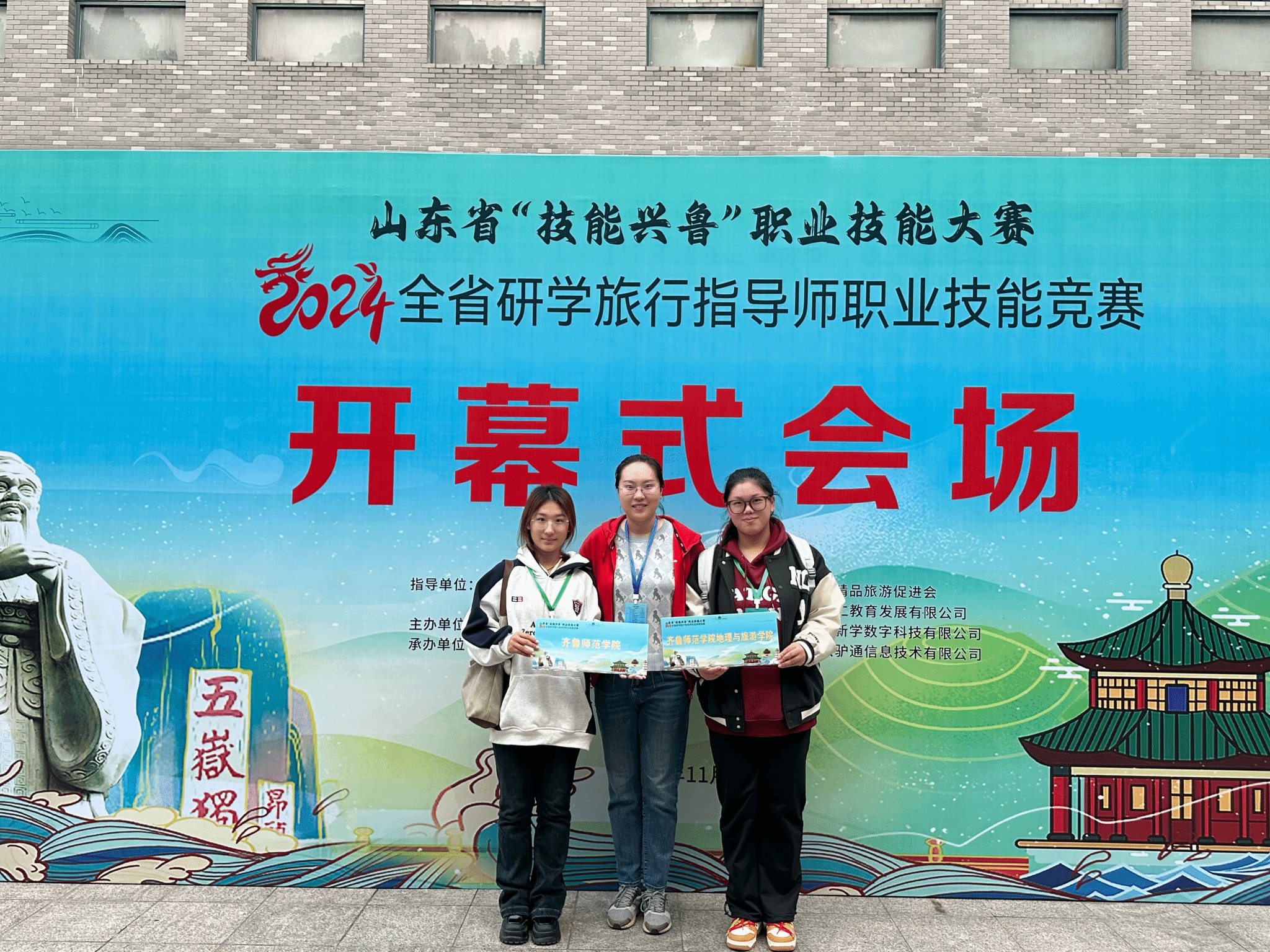 比赛备赛期间,旅游管理教研室王燕、程晓双、赵茗悦三位教师围绕山东省研学旅行资源特色和优势条件,对参赛选手进行了精心的赛前指导,深入挖掘泉水文化、科技文化、齐文化、泰山文化等12个资源类型和24个资源点的特点,设计了精彩的研学课程,并进行了生动的实操展示,展现了卓越的专业技能和创新能力,最终荣获佳绩。
