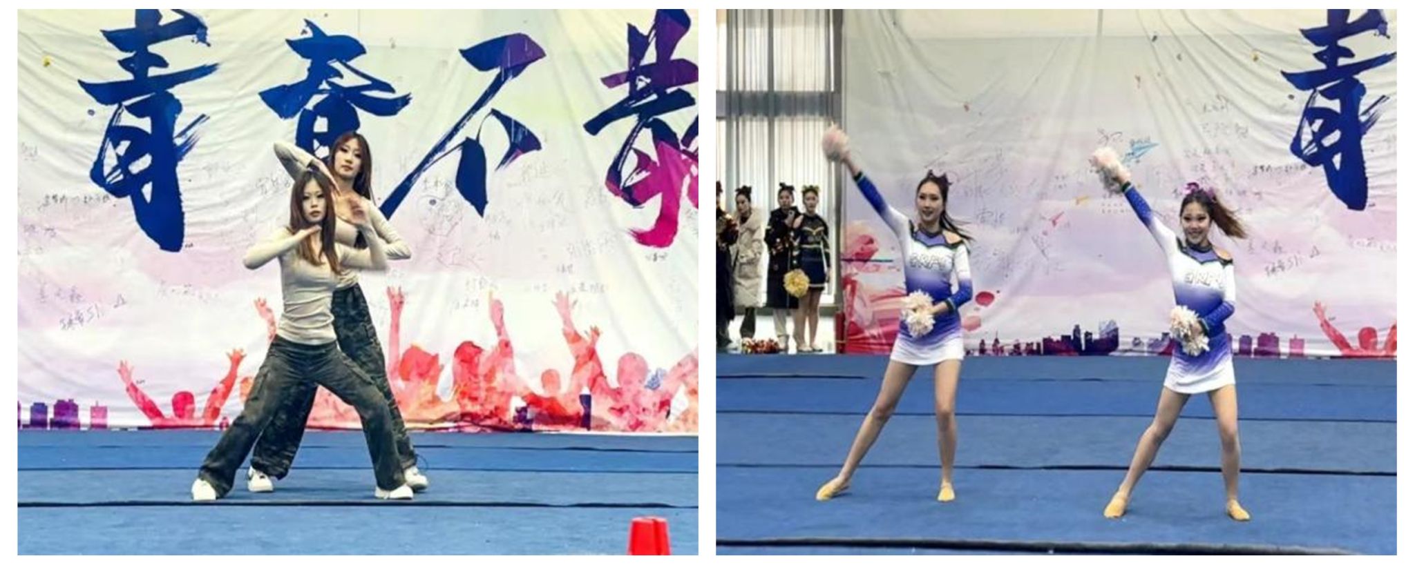 在“双人街舞”项目中,2023级小学教育专业学生许佳璐、万紫琛配合默契,鲜明的律动节奏感,高难度的街舞技巧,展示了力与美的糅合;“双人花球”项目同样精彩纷呈,2022级小学教育专业刘丰源、2023级小学教育专业于佳琳明快奔放的动作向大家展示了青春的激情,赢得了在场观众经久不息的掌声。