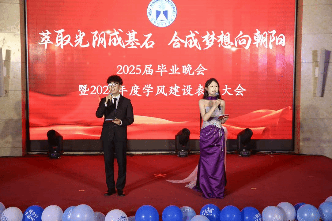 2025年6月5日晚,化学与化工学院“萃取光阴成基石,合成梦想向朝阳”毕业晚会暨2024年度学风建设表彰大会在章丘校区第一学术报告厅隆重举行,学院党政班子成员,全体辅导员,受表彰的指导老师与学生代表,2025届全体毕业生参加。