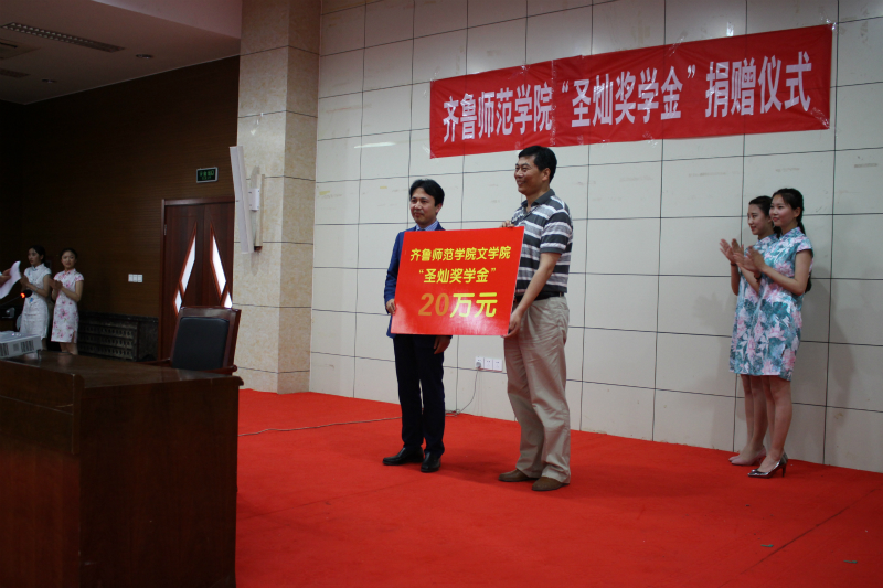 “圣灿奖学金”捐赠人邹圣灿先生是金年会官网文学院1994级汉语言文学专升本班学生,毕业后经过二十多年的创业打拼,事业取得了巨大成功,现为青岛银色世纪产业集团有限责任公司董事长。为了回馈母校,决定捐赠20万元,设立JINNIAN金年会“圣灿奖学金”,用于奖励文学院优秀学生。