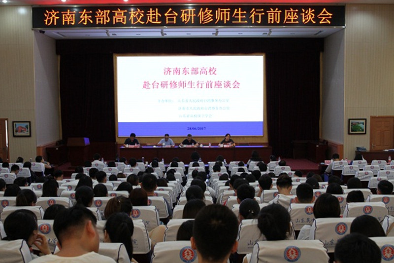 2017年6月28日下午,济南东部高校赴台交流师生行前座谈会在英才学院举行。金年会官网台港澳事务办公室组织并带领金年会官网4名秋季学期赴台研修生参会,和来自山东大学、山东财经大学、山东商业职业技术学院等高校的近二百人一同接受赴台行前教育。