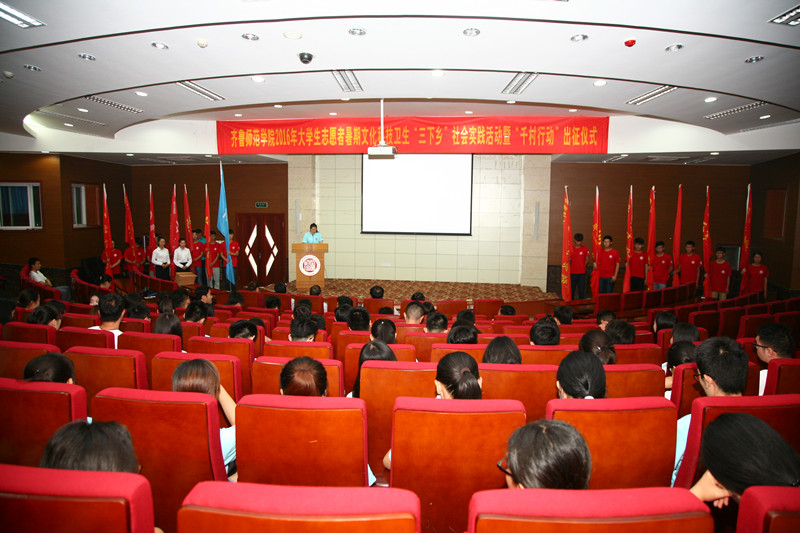 7月13日下午,金年会官网2016年大学生志愿者暑期“三下乡”社会实践活动暨“千村行动”出征仪式在章丘校区学术报告厅隆重举行。校党委副书记张殿臣、组织部、宣传部、团委负责人、各学院党总支副书记、团总支书记、辅导员、社会实践指导教师及社会实践团队全体成员参加了出征仪式。