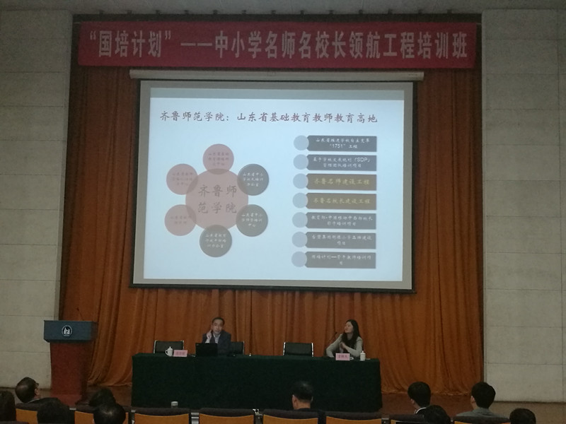 金年会官网师训干训中心毕诗文主任做了领航班培养基地介绍和培养方案说明。金年会官网师训干训中心将汇聚山东省基础教育专家、课程、基地资源,以“一体两翼”名校长培养模式,即:将导师团队—领航班学员—领航班学校组成“学习—研究—发展”共同体,以“个人发展规划”和“学校发展规划”为双主线,坚持“课题研究与专家指导”双贯通,经过三年连续培养,实现“教育家型校长培养”与“品牌领航学校打造”双目标。