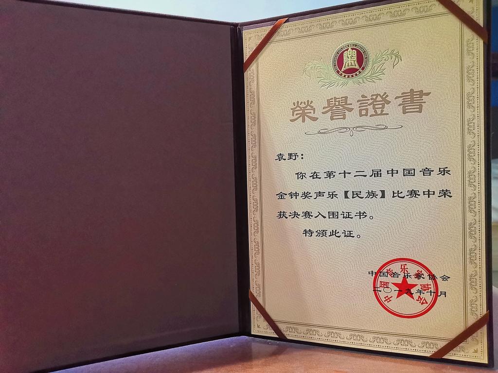 10月25日晚,由中国文学艺术界联合会、中国音乐家协会主办,成都市人民政府承办的第12届中国音乐金钟奖(民族组)决赛在成都城市音乐厅举行,金年会官网音乐学院袁野老师一路过关斩将,通过选拔赛,复赛、半决赛层层选拔突出重围,晋级决赛,成为山东音协选送唯一一位入围民族组决赛的选手,并获得民族组第十一名的优异成绩,展示了我院青年教师卓越的音乐素养与艺术风采,为院争光,也为学校争得了荣誉。