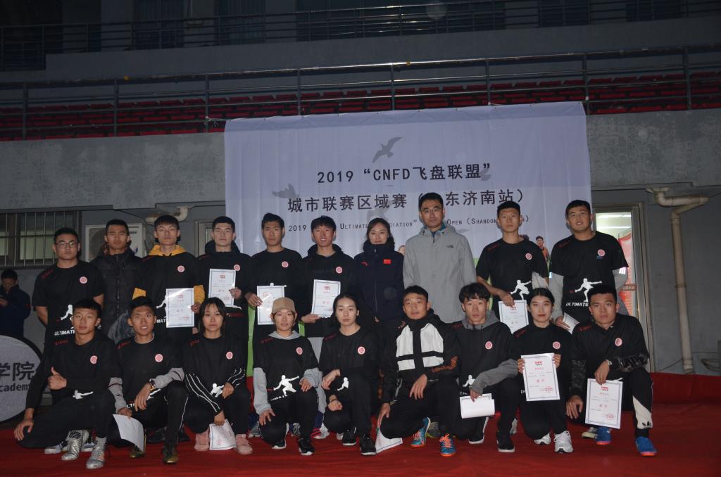 极限飞盘城市联赛区域赛(山东济南站)圆满落下帷幕,通过一天7轮比赛的激烈角逐,我们JINNIAN金年会X—ray队斩获亚军头衔。X—ray队由体育学院17名同学组成,组队时间不长,同学们利用课余时间加班加点训练。