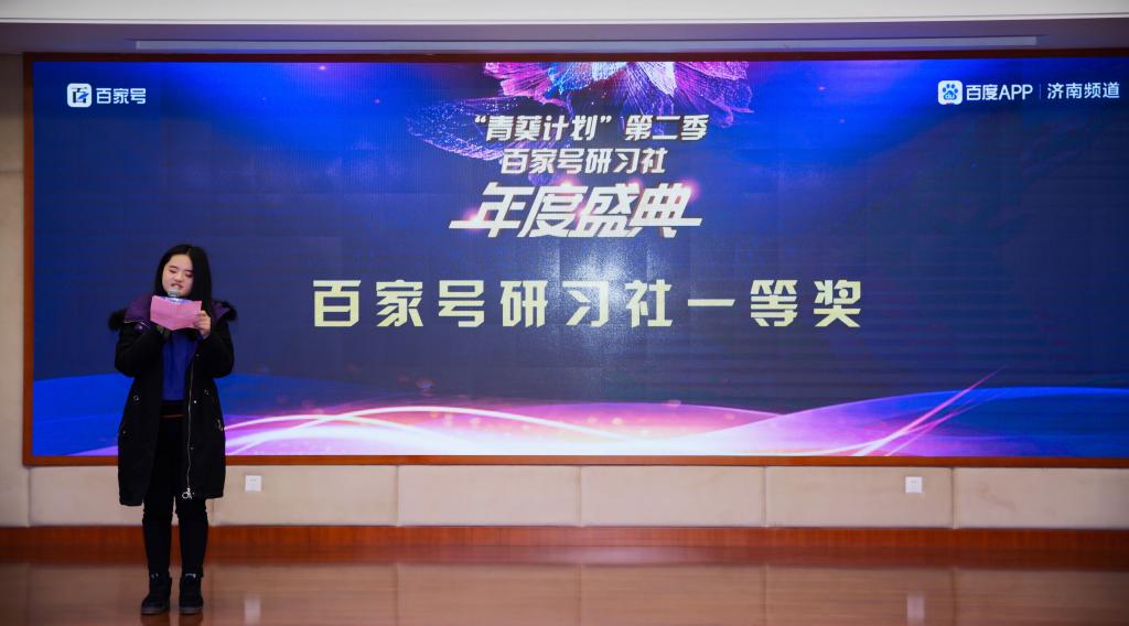 2019年12月30日下午,山东省大学生“青葵计划”第二季写作大赛暨百家号研习社年度盛典在山东省社会科学界联合会报告厅举行。大赛由共青团山东省委指导、百度(济南)主办,百度百家号(济南)内容创业中心承办,双元教育集团协办。各级政府领导、新媒体行业大咖及高校领导、师生、获奖选手等近300人聚集一堂,共同见证此次年度盛典。