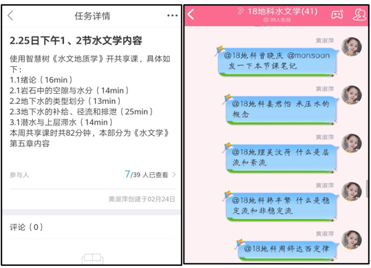 首先,资源匹配问题。本学期的《水文学》作为师范院校地理类的一门专业基础课,主要着重水文科学基础理论的阐述,为后续课及中学地理教学提供必要的基础知识,而中国大学MOOC、智慧树、超星等平台的课程主要着重于水文现象的变化规律及其在工程上的应用,教授对象以给水排水工程专业学生为主。为解决此问题,本门课程采用线上教学和直播教学相结合的方式,一是寻找部分与地理师范类专业相匹配的资源,如“地下水的结构与运动”便是在智慧树平台《水文地质学》中观看共享课视频,每次课前布置好具体的学习任务和学生应达成的学习目标,下课前检查学生任务达成度;二是未有匹配资源的教学内容采用直播教学的方式。