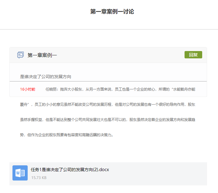 使用学习通进行第一章案例一课堂讨论。
