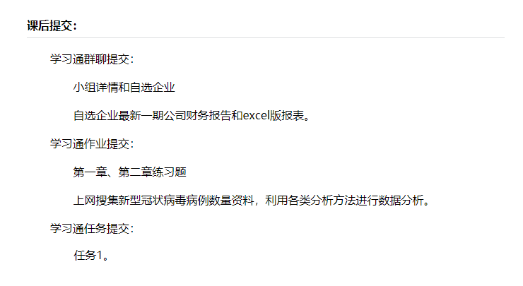每个章节学完都有学习通作业需要提交,除了常规作业,还会发放结合现实热点的作业,考核学生的应用能力。