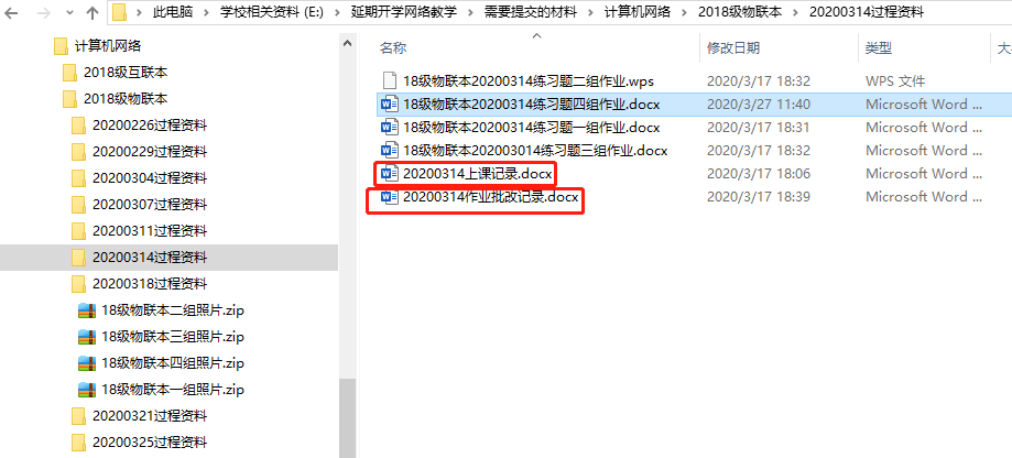 在每次课程,都会记录过程文档。包括上课记录,作业提交情况、作业批改记录以及学生学习过程照片(作业或照片会根据当节课的课程内容进行调整)。以《计算机网络》课程为例,见图14、图15。