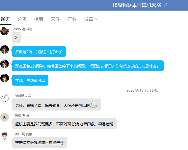作为老师,学生的学习结果是至关重要的。由于特殊时期,线上教学也是首次启用,效果不好评估。因此在教学过程中,会定期通过QQ群与学生进行沟通,进行调整。