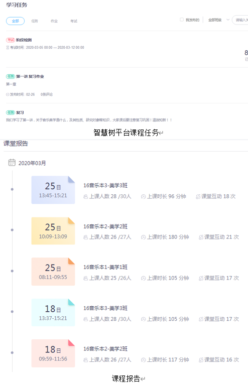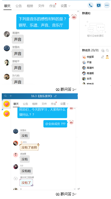《音乐美学》课程采用智慧树集合QQ群,同时结合腾讯会议的方式开展线上教学。相关课程资源包括:课程视频、课程PPT、音视频资料等。