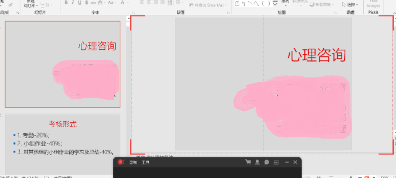 3.录播经验:录播前先尝试一下3分钟,然后自己点开看看。主要看话筒有没有声音、音量大小和录屏的效果。录屏的时候我发现只录一部分屏幕的方式比较好,这样你在旁边可以操作,录屏上是看不见的(下图右边部分的框才是录的屏,左边就可以随意操作)。