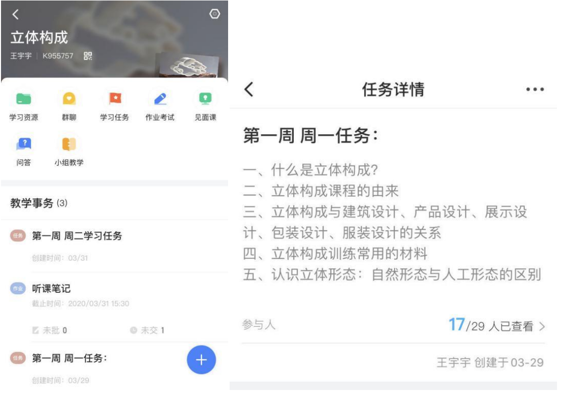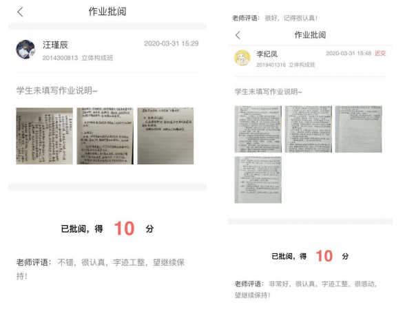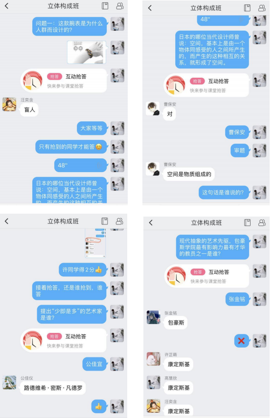 对于学生在与教师时空分离的情境下,如何开展有指导和有支持的在线学习,对于学生提出的疑难问题和学生在作业训练当中有不到位的地方,这些问题是《立体构成》线上教学中面临的一个挑战,因为我所授课的班级有29名同学,如果在直播授课时逐个进行讲评,势必会浪费掉大量的时间。因此,我会让学生把疑难问题和作业上传到我所建立的翻转课“作业考试”模块当中。我在课下进行问题答疑和作业批改,对每个同学存在的问题逐一进行回答。