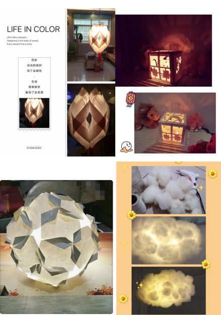 经过这个周16课时的《立体构成》课程的学习,学生们已经渐入佳境,学习积极性都很高,根据我开始给大家制定的主题“家庭废置材料再利用设计”,学生们足不出户,根据老师的指导,同学们发挥自己的主观能动性,利用家庭当中的纸、瓶子等材料进行了一系列优秀的立体构成作品,从教学效果上来看,还是令我非常没有想到的,在没有老师时刻盯着的情况下,还能做出这么多优秀的作品,实属不易。以下是部分学生习作,利用家里的废置材料做得灯罩设计。
