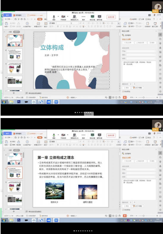 疫情当前,全国众志成城,大家都避不出门为世界做贡献。学生们的学习不能停歇,教育部提出“停课不停学”,按照教育部和省教育厅的工作部署,经过前几个周的探索总结,我们的师生不断调整和优化在线课堂教学,从“摸着石头过河”到渐入佳境。线上教学这些天来,面对当前疫情大考,我们作为高校教师要因时而进、因势而新,应着力在线上教学方式、线上教学疑难问题、关心关爱学生学习等几个方面持续发力,也总结出了在线教学的教法和学法指导。现总结自己的线上授课体验,以《立体构成》课程为例,分享一下《立体构成》第一周线上授课情况。
