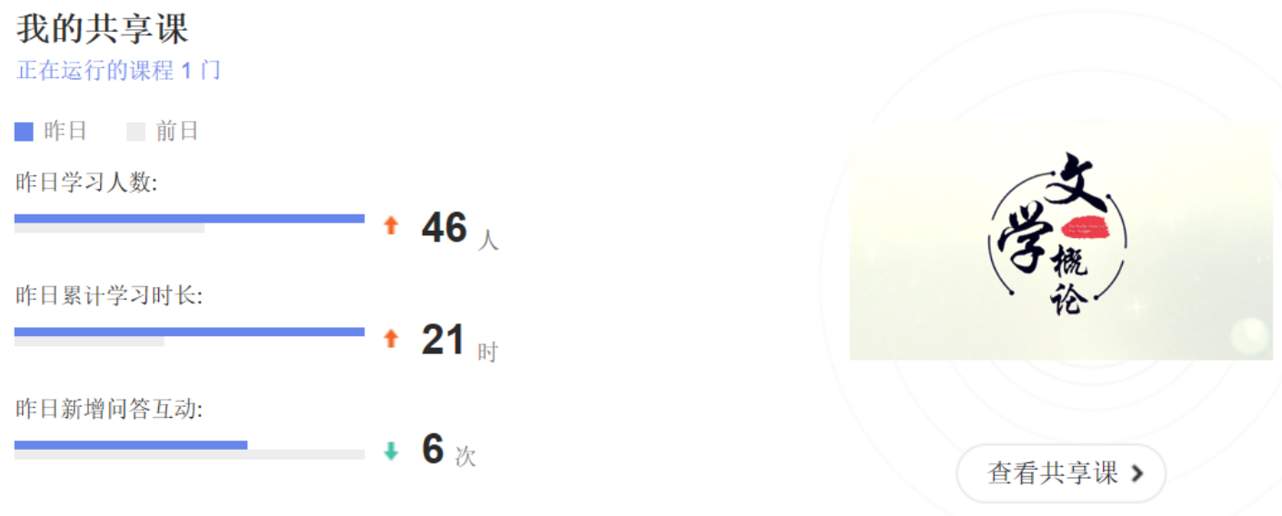 1、精选共享课程,实现多个视频资源优势互补 目前能搜索到的几大网络教学平台中文学理论课程资源共有9个,经过与教研室 其他老师优中选优,我们选择了智慧树平台吉林师范大学推出的《文学概论》课程作 为学生的共享资源。这门课的优势在于,最后一章安排了具体理论与文学作品的结合 运用,如用精神分析学说来分析《阿Q正传》等作品,化抽象为具体。