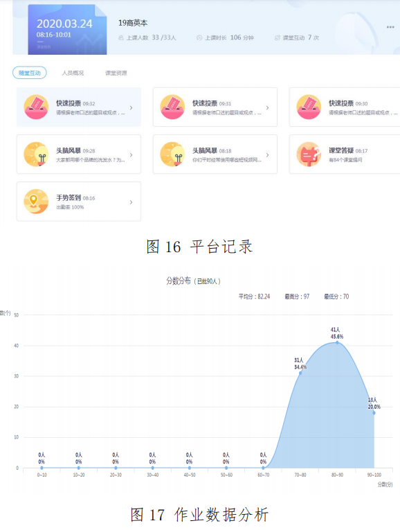 基于智慧树平台特点深耕细作,积极探索其手势签到、快速投票、答疑弹幕及头脑风暴功能。一则以此吸引学生保持全神贯注的状态,二则通过学生深有体会的生活经历或者话题讨论,深化其对讲授知识点的理解和巩固。