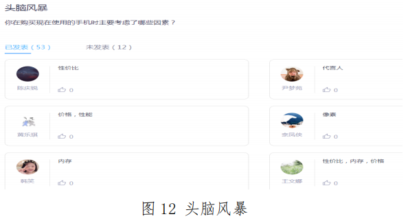 通过提前编辑并分时段发送课堂头脑风暴讨论话题,可大幅激发学生参与讨论并发表独立思考观点的积极性,从其亲身体会的消费体验入手,以消费者视角透视课程理论知识,更具说服力,更能引起共鸣,也更有益于学生理解记忆。例如,发起“你在购买现在使用的手机时主要考虑了哪些因素”这一头脑风暴话题,引发学生对国际市场微观细分中的行为细分相关概念的探讨,加深其根据购买者追求的不同利益从而划分消费者群体的理解与掌握。