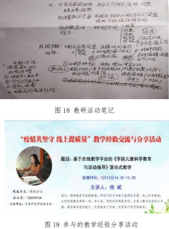 积极参加教研室在线教学教研活动及学院组织的在线教学经验交流与分享活动,博采众长,汲取其他老师成功经验,有机运用到本课程中。