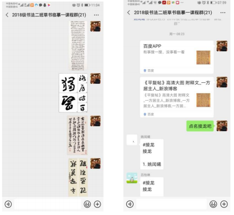 2.课程内容及教学方案方面。本课程本是临摹名家作品,加强对学生的基本功训练,为学生将来的进一步学习打好坚实基础。在上课期间,增加了很多网络资源来丰富教学内容,主要采取让学生按时在微信发作业图片,给学生进行语音和文字点评的方式,及时了解学生作业进度及情况,以便解惑答疑、因材施教。