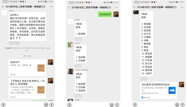 1.上课考勤方面,我主要是通过微信群接龙和腾讯会议中的成员管理来进行查看,效果良好