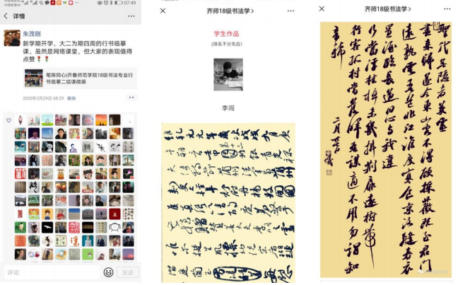 在与学生们的网络教学交流过程中,我深切体会到与学生亦师亦友的亲近之感,专业课教学也变的更加生动有趣。这段时间的书法网络课教学也为我今后的教学提供了更多的借鉴和思路。我将继续探索和改进,取得更好的教学效果。